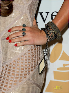 Let it be known that aside from the occasional sighting of her throughout my blog, I am actually what I would like to call an Unofficial Fan of 18-year-old actress/singer Miley Cyrus and I guess by unofficial I mean… Im not really a Miley fan, but more so I AM a fan of some of her most recent accessory selections! Miley was spotted stepping out in a nude Herve Leger dress as she arrived at the 2011 Pre-GRAMMY Gala and Salute To Industry Icons Honoring David Geffen at Beverly Hilton on Saturday night (February 12) in Beverly Hills. Not only was her dress selection Ah-maze-ING so was the jewelry she coupled right along with her stunning get up! I must say, when I caught glimpse of these photos I had a true Miley-Spiration moment! It seems to me that Ms. Miley never fails to deck out her wrists with some of the most eye catching and ever so fabulous décor! So today I am paying tribute to her accessories that are So right up my alley! Here’s to Miley-spiration!